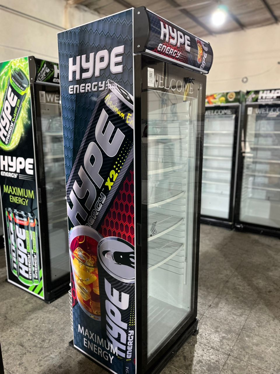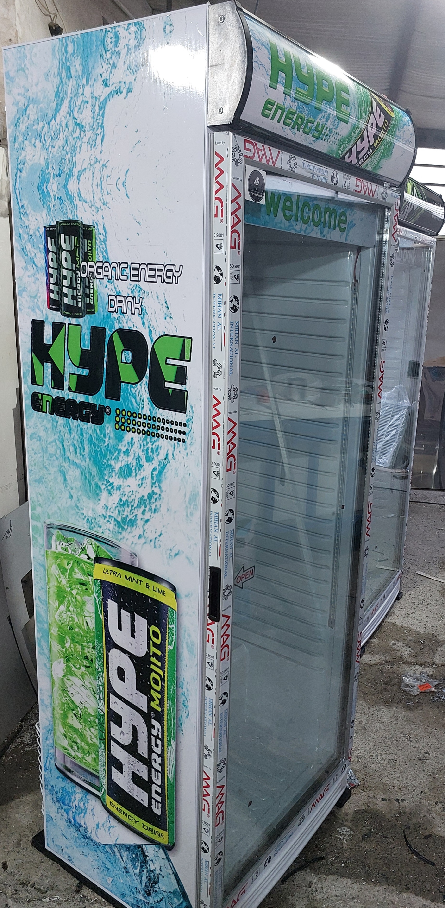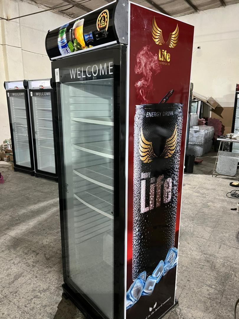 یخچال ویترینی ایستاده عرض 70سانت تک درب طرح انرژی زا پاوردرینک power drink
