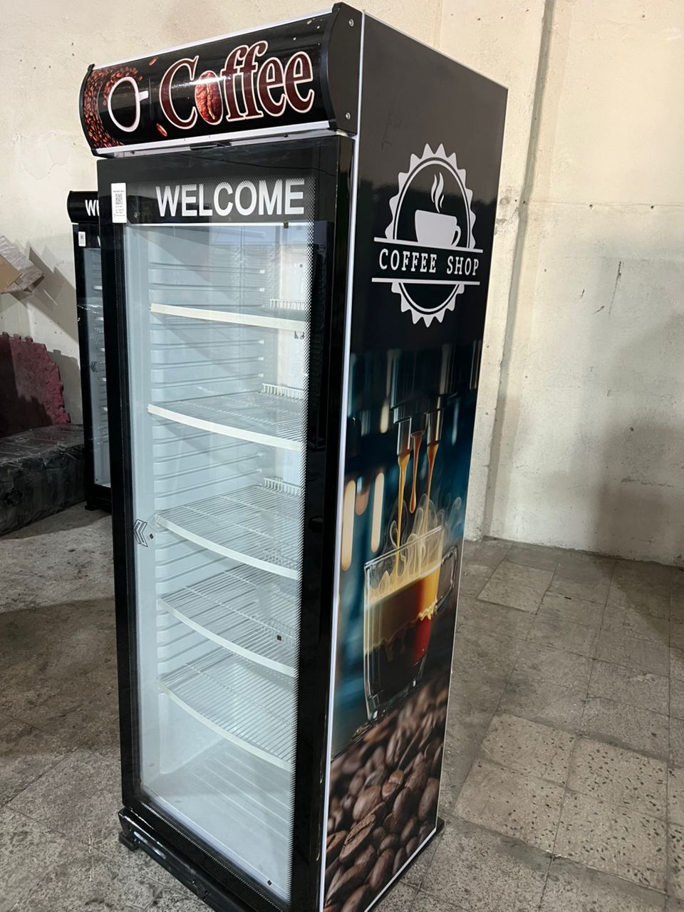 یخچال ویترینی ایستاده 70 سانت تک درب طرح کافه دستگاه اسپرسو