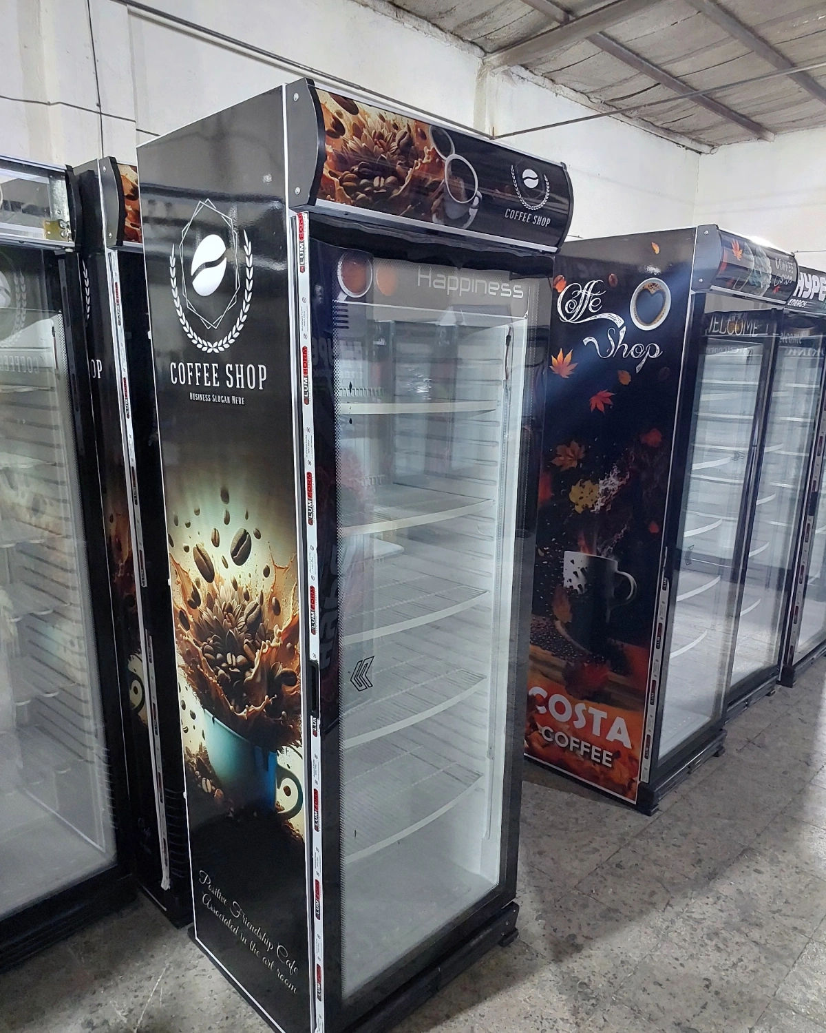 یخچال ویترینی ایستاده عرض 70 سانت تک درب طرح کافه پاییزی