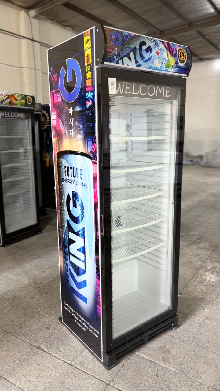یخچال ویترینی ایستاده عرض 70سانت تک درب طرح انرژی زا پاوردرینک power drink
